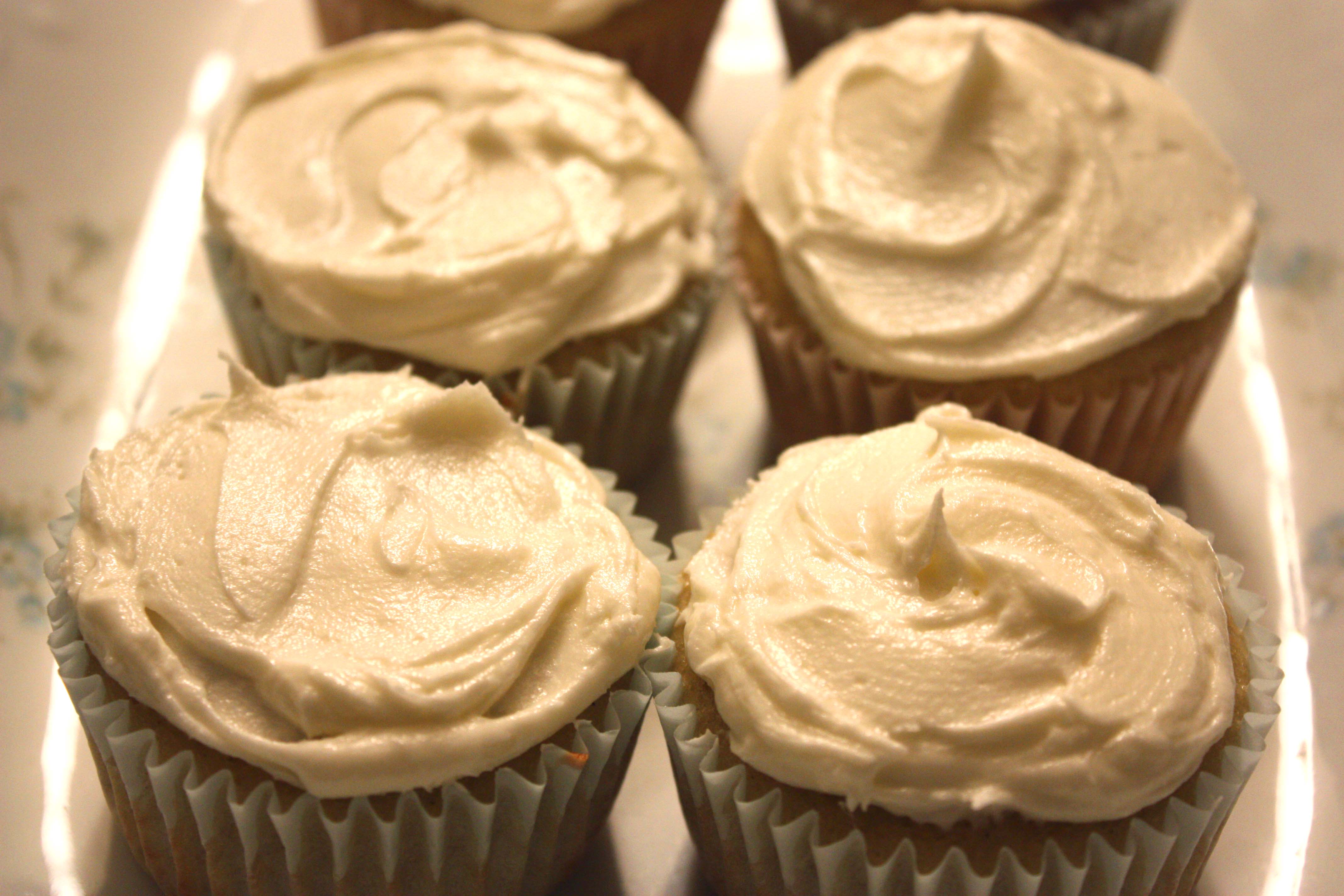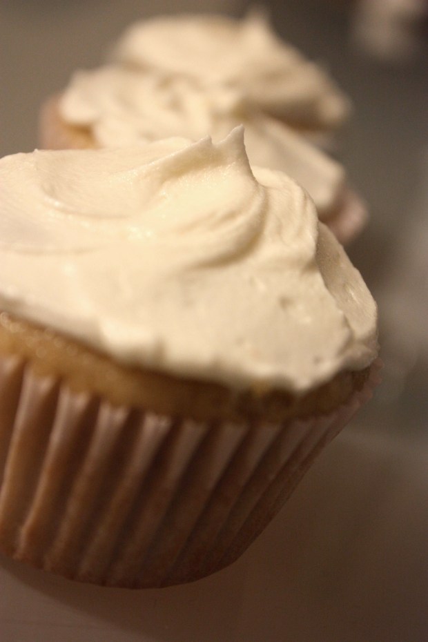 Pour batter into paper lined cupcake pan.  Bake 15-20 mins.  Makes 12 cupcakes.  Once completely cooled, frost with Sweet Rose Frosting: