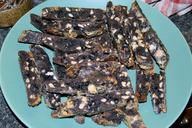 I’ve tried to make biscotti numerous times. It never turns out right. But the Biscotti Queen has got it down. Way back when in January, she even sent me some in the mail!