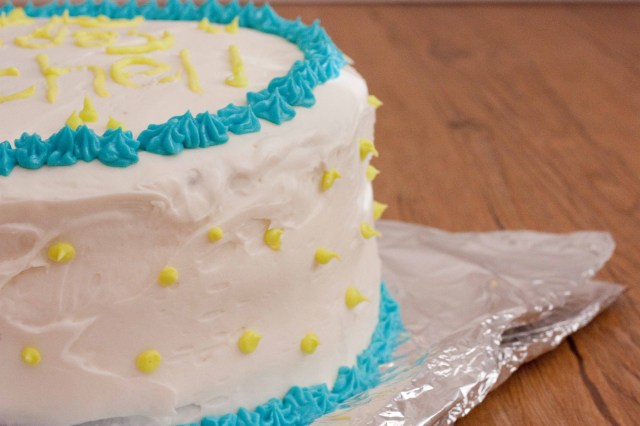 So…I know cupcakes are all the rage these days, but I have an unnatural love for layer cakes and let’s face it, birthdays merit layer cakes. There’s something about a fully assembled and frosted layer cake that makes me feel warm and fuzzy inside.