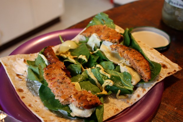 Usually I just use some rice wine vinegar then throw them in the oven for 10 minutes. But today I decided to try out a sauce that I got from Tina‘s Open Sky dealio she had a few weeks ago. It was only $0.99 and free shipping so I figured why not.