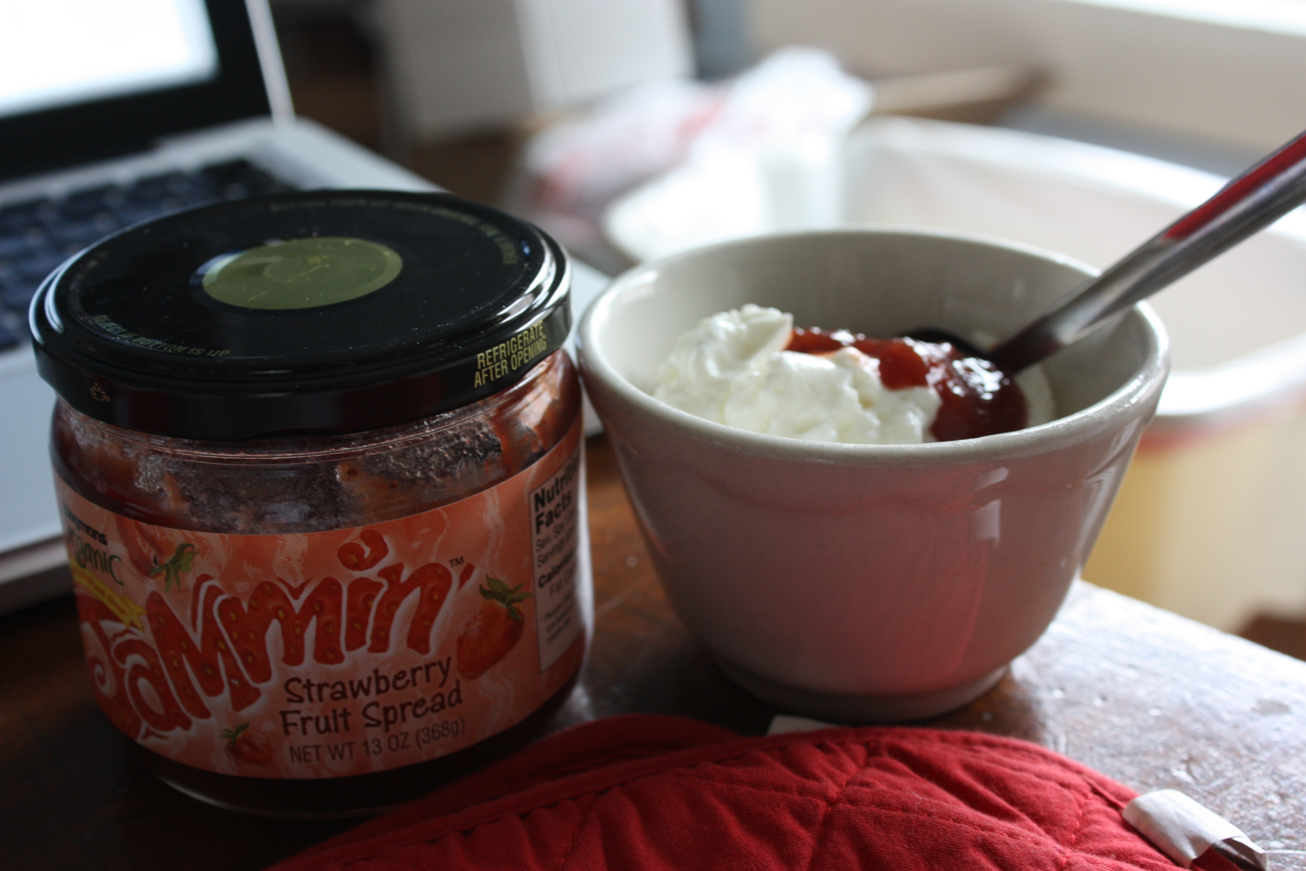 1/2 cup Plain Non-Fat Greek Yogurt (4.5g) + Strawberry Jam (6g)= 10.5