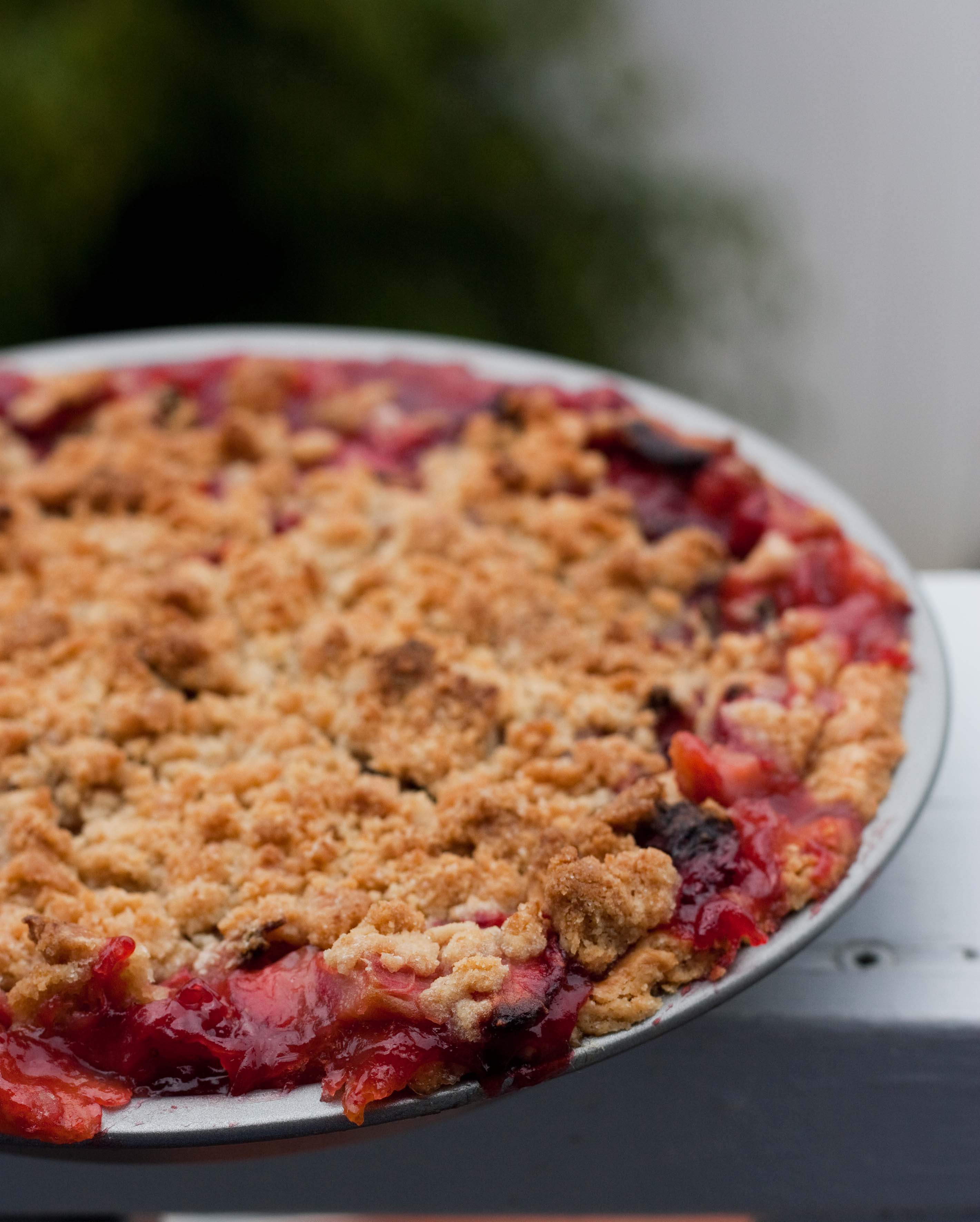 Set aside while you make the topping. Next make crumble topping. Combine dry ingredients. Add butter and using your fingers work it into the mixture. Drizzle in bourbon and toss to combine. The mixture should look sort of like crumbs.