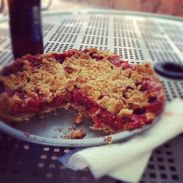 Next assemble the pie. Pour a bit of the caramel into the pie crust and spread. Next lay in half the apple mixture, pour some more caramel sauce (maybe 1/3 of it? also note if your caramel cooled too much and hardened just warm it up a bit on the stove). Add the remaining apples and drizzle with some more caramel. You should have about 1/4 of the caramel left over. Sprinkle the crumble topping on the apples, then drizzle remaining caramel on top. Place pie on a baking sheet and bake 45-60 mins or until golden and the fruit is bubbling in the middle.